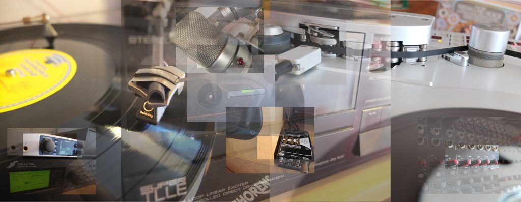 - Analog: 1/4″ Master-Tonband (Unsere Studer A816 ist die absolute Spitzenmaschine auf diesem Gebiet. Sie ist das letzte für den klassischen deutschen Rundfunk entwickelte Klangwunder und steht auch noch in dessen Tonbandarchiven.) Schallplatte (Unser Thorens-Dreher mit Goldringnadel darf schon beim durchgeknallten HiFi-Freak mitreden und kommt über eine Phono-DI-Box von Radial ans Pult. Jeder Tonträger wird von uns vor dem abspielen professionell gereinigt.) Kompaktkassette (Auch unser Kenwood-Deck kann sich hören lassen und sogar in Level und Bias kalibriert werden.) Für Wachswalzen und andere exotische Klangaufzeichnungen, bitte Abspielgerät mitbringen…
